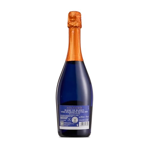 - SOLEGRO SPUMANTE BLANC DE BLANCS MILLESIMATO EXTRA DRY: vino spumante delicato e versatile in un’unica bottiglia blu, perfetto da aperitivo come a tutto pasto. Gradazione alcolica 11% vol. Prodotto in Italia.